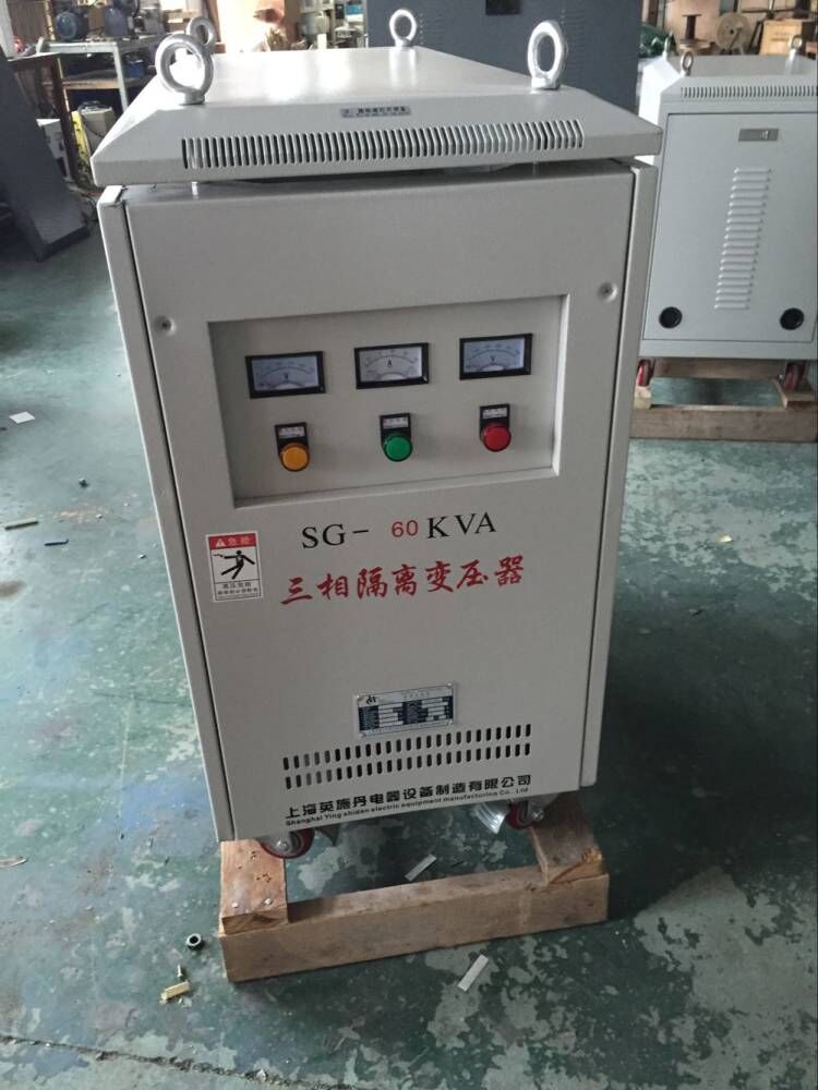 三相變壓器多少錢哪里買三相變壓器什么價格?三相干式隔離變壓器性能參數(shù): 1.額定容量:1kVA~2000kVA 2.聯(lián)結(jié)組別:Dyn11,Yyn0 3.工頻耐壓:3kV/min 4.絕緣耐熱等級:F,H 級 5.溫升限值:鐵芯不超過 85K,線圈溫升不超過 95K 6.輸入額定電壓:三相 380V 或單相 220V 7.工作頻率:50Hz-60Hz 8.效率:≥98% 9.波形畸變:<0.1% 10.絕緣電阻:繞阻對地絕緣電阻三相 ≥3.8M 歐米茄;單相 ≥2.2M 歐米茄 三相干式隔離變壓器作用: 用隔離變壓器建立新的中線-接地就可解除電網(wǎng)中共模干擾和其它中線的困擾,隔離變壓器將三線△接線轉(zhuǎn)換為四線 Yo 系統(tǒng),加屏蔽就進(jìn)一步免除了由變壓器內(nèi)部耦合的高頻脈沖干擾和噪音,雖然有屏蔽的隔離變壓器對各種 N-G 來的干擾(脈沖和高頻噪聲)能有效防止,但變壓器必須正確妥善接地,十分嚴(yán)格,否則抗共模干擾將無效果。本公司為客戶設(shè)計生產(chǎn)高質(zhì)量的隔離變壓器。 三相干式隔離變壓器特性優(yōu)點: 1.高度隔離 2.N-G 性能良好 3.高度共模干擾抑制 4.將△轉(zhuǎn)換為 Y 或 Y 至△ 電壓抽頭容易轉(zhuǎn)換 6.按用戶的特殊性能要求設(shè)計 隔離變壓器隔離變壓器加裝在穩(wěn)壓電源的應(yīng)用 一、在電源輸入端接入隔離變壓器(三角/星形) 1、若電網(wǎng)三次諧波和干擾信號比較嚴(yán)重,采用△/Yo 隔離變壓器,可以去掉三次諧波和減少干擾信號。 2、可以采用△/Yo 隔離變壓器產(chǎn)生新的中性線,使設(shè)備與電網(wǎng)中性線無關(guān),避免由于電網(wǎng)中性線不良造成設(shè)備運(yùn)行不正常。 3、非線性負(fù)載引起的電流波形畸變(如三次諧波)可被隔離而不污染電網(wǎng)。二、在電源輸出端接入隔離變壓器(星形/三角) 1、防止非線性負(fù)載的電流畸變,影響到穩(wěn)壓電源的正常工作及反回到電網(wǎng),起到凈化電網(wǎng)的作用。 2、非線性負(fù)載電流的畸變影響取樣的準(zhǔn)確性,可以在 Yo/△隔離變壓器輸入端采樣,得到能反應(yīng)實際情況的控制信號,使穩(wěn)壓電源控制正常。 3、若負(fù)載不平衡,采用 Yo/△也不影響穩(wěn)壓電源的正常工作。 SG系列三相干式變壓器、為戶內(nèi)空氣自冷式,適用于交流50Hz/60Hz、電壓1000V及1000V以下的電路中,作為各類機(jī)床、機(jī)械設(shè)備等一般電器的控制電源、局部照明及指示電源,也可作為小型動力電源用。 符合標(biāo)準(zhǔn):Q/ZT525。 正常工作條件和安裝條件 海拔不超過2000m。 最高環(huán)境溫度為+40℃;最低環(huán)境溫度為-5℃(極限值-25℃)當(dāng)用戶需要在低于-25℃環(huán)境下使用時,需在訂貨 時特殊指明。 大氣相對濕度在周圍溫度為+40℃時不超過50%,在較低溫度下可以有較高的相對濕度,最濕月的月平均最大相對濕度為90%,同時該月的月平均最低溫度為+25℃。 環(huán)境空氣中,無嚴(yán)重影響變壓器絕緣的污穢及易爆介質(zhì),不含有腐蝕金屬和破壞絕緣的有害氣體或塵埃,使用中不得使變壓器受到水、雨、雪的侵蝕。 安裝場所無嚴(yán)重的振動和顛簸。 電源電壓波形為實際正弦波,三相電源近似對稱。 結(jié)構(gòu)特點 SG系列三相干式變壓器可制成開啟式或防護(hù)式,具有損耗低、噪聲小、防火性能好和不污染環(huán)境等 優(yōu)點。其中防護(hù)式是采用鋼板加工成箱殼,變壓器在箱殼內(nèi)部,箱殼外有進(jìn)出線孔,以便安裝電源線路。 另外,防護(hù)式可按用戶要求增加電壓電流監(jiān)控儀表,80kVA及以上大容量的還可增加軸流散熱風(fēng)機(jī),也 可增加轉(zhuǎn)向輪以便移動。 三相變壓器多少錢哪里買三相變壓器什么價格?