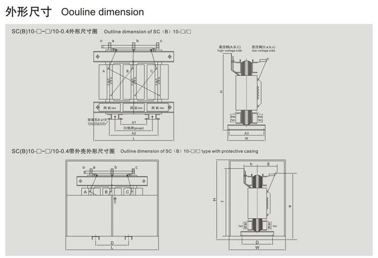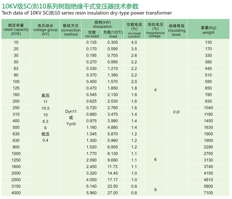 SCB10-100/10,SCB10-125/10 SCB10-160/10,SCB10-200/10,SCB10-250/10,SCB10-315/10,SCB10-400/10,SCB10-500/10 SCB10-630/10,SCB10-800/10,SCB10-1000/10,SCB10-1250/10,SCB10-1600/10 SCB10-2000/10,SCB10-2500/10 SCB10-3000/10SCB10變壓器執(zhí)行標(biāo)準(zhǔn): 1.GB1094.11—2007干式電力變壓器 2.GB/T10228—2008干式電力變壓器技術(shù)參數(shù)和要求 3.GB/T17211—1998干式電力變壓器負(fù)載導(dǎo)則 4.GBl094.10—2003電力變壓器第3部分:絕緣水平、絕緣試驗(yàn)和外絕緣空氣間隙 5.JB/T10008—2004 6、500kV級(jí)變壓器聲級(jí) 6.JB/T56009—1998干式電力變壓器產(chǎn)品質(zhì)量分等