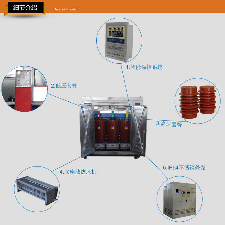 SC(B)9、SCR9、SC(B)10、SCR10系列樹脂絕緣干式電力變壓器● 產(chǎn)品簡述 SCR9、SCR10系列樹脂絕緣纏繞干式電力變壓器 用目前國內(nèi)外現(xiàn)有澆注工藝制造的高電壓,大容量干式變壓器,其線圈內(nèi)部可能會(huì)產(chǎn)生應(yīng)力、微小裂縫及存在樹脂未能完全浸透之處。而纏繞干式變壓器完全能彌補(bǔ)澆注干式變壓器以上之不足,具有更節(jié)能、機(jī)械強(qiáng)度和電氣強(qiáng)度極高、抗突發(fā)短路能力極強(qiáng)、線圈***龜裂、運(yùn)行***可靠、防爆、過載能力極高、制造周期短、冷熱沖擊穩(wěn)定性***等優(yōu)點(diǎn),特別適宜高電壓、大容量、易燃區(qū)域的干式變壓器選型。 本系列產(chǎn)品以短玻璃絲為填料的澆注線圈采用分段圓筒式,線圈內(nèi)部設(shè)置有軸向氣道以改善散熱條件?茖W(xué)的澆注成型工藝可確保樹脂充分滲透到匝間、層間、段間以保證產(chǎn)品的電器絕緣強(qiáng)度及較少的局放置(≤5pc)。 SC9、SCB9、SC10、SCB10系列樹脂澆注絕緣干式電力變壓器多少錢?¥萬元。什么價(jià)格? 本系列產(chǎn)品以短玻璃絲為填料的澆注線圈采用分段園筒式,線圈內(nèi)部設(shè)置有軸向氣道以改善散熱條件。科學(xué)的澆注成型工藝可確保樹脂充分滲透到匝間、層間、段間以保證產(chǎn)品的電器絕緣強(qiáng)度及較少的局放置(≤5pc)。如何防止樹脂澆注體的龜裂,控制澆注體內(nèi)殘留氣泡的產(chǎn)生,把局放降低到最小極限一直是國內(nèi)外干變制造廠的重大課題,是樹脂澆注干式變壓器的關(guān)鍵制造技術(shù)。 本公司通過反復(fù)的生產(chǎn)實(shí)踐及頻繁的理化試驗(yàn),成功地解決了這一***難題,使本公司以短玻璃絲為填料的薄絕緣真空澆注型產(chǎn)品,其抗拉強(qiáng)度提高到170N/mm2彎曲強(qiáng)度提高到220N/mm2 從整體上提高了樹脂固化體的機(jī)械性能。本公司SC(B)10系列樹脂澆注薄絕緣干變產(chǎn)品制造技術(shù)的獨(dú)到之處,獨(dú)成一格的創(chuàng)造點(diǎn)是: 1、減薄了包封層的樹脂厚度,增強(qiáng)了線圈的散熱能力。 2、線圈采用玻璃絲氈加強(qiáng),增強(qiáng)了線圈的機(jī)械強(qiáng)度,提高了產(chǎn)品抗突發(fā)短路能 力,成功地解決了澆注體龜裂的問題。 3、線圈采用特殊工藝、極大地減少了線圈內(nèi)部的局部放電量,提高了線圈電氣強(qiáng) 度。 4、低壓線圈采用箔式結(jié)構(gòu),減少了端部漏磁,提高了產(chǎn)品抗突發(fā)短路能力。  SCB10系列變壓器型號(hào)有;