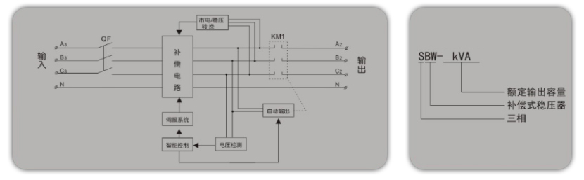 工作原理圖: 產品概述: 英施丹三相全自動補償式電力升壓穩(wěn)壓器是適用于當外界的供電網絡電壓波動或負載變化而造成電壓波動時,能自動保持輸出電壓穩(wěn)定。本系列產品與其它型式的穩(wěn)壓器相比,具有容量大、效率高、無波形畸變、電壓調節(jié)平穩(wěn)等優(yōu)點,適用負載廣泛,能承受瞬時超載,可長期連續(xù)工作,手動/自動切換,設有過壓保護、缺相、相序保護及機械故障自動保護,本機體積小,重量輕,使用安裝方便,運行可靠等優(yōu)點。(分數顯、儀表指示兩類) 廣泛運用于隧道遠距離升壓、礦洞升壓、工礦企業(yè)、印刷、機床、郵電、鐵路、建筑工地、學校、醫(yī)院、賓館、國防、科研等部門的電子計算機、精密機床、精密儀器、實驗裝置、電梯及生產流水線的電源穩(wěn)壓中。同時也適用于電源電壓低、波動幅度大的低壓配電終端用戶及負載變動較大的用電設備,如升降機、起重機、攪拌機等一切需要電壓穩(wěn)定的場所。技術參數: 輸入電壓 | 單相220V±20%,三相四線線電壓380V±20%(可定制±30% ) | 輸出電壓 | 單相220V 三相380V | 輸出精度 | ±1-5﹪(可調) | 頻率 | 50Hz/60Hz | 效率 | ≥98﹪(功率等級50KVA以上) | 響應速度 | ≤1.5S | 環(huán)境溫度 | -10℃- + 40℃ | 絕緣電阻 | ≥ 2MΩ | 過載能力 | 二倍額定電流,維持一分鐘 | 波形失真 | 無附加波形失真 | 保護功能 | 過壓、欠壓、過流、缺相、相序、旁路 | 旁路 | 當穩(wěn)壓器需要維護或穩(wěn)壓器出現故障時可手動切入市電 | 適應負載 | 阻性 容性 感性 | 控制系統(tǒng) | 機采用雙控制器系統(tǒng)控制,實現人性化設計,能有效的減少對設 備的維護時間,可選擇人機界面 |