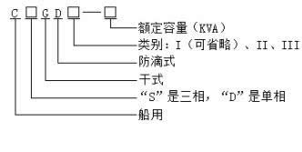 3、結(jié)構(gòu) a) 變壓器為防滴干式底腳安裝。 b) 變壓器絕緣為B級、F級或H級。 c) 三相變壓器有一個整體和三只或四只單相變壓器組成三種。變壓器箱體有優(yōu)質(zhì)鋼板制成,結(jié)構(gòu)即充分考慮到空氣流通,又能有效地防滴及防止鼠類進入內(nèi)部。接線板及換接接線柱在變壓器箱體內(nèi),引入電纜可方便地通過箱體左側(cè)或右側(cè)的填料函接到接線板上。 4、型號及含義